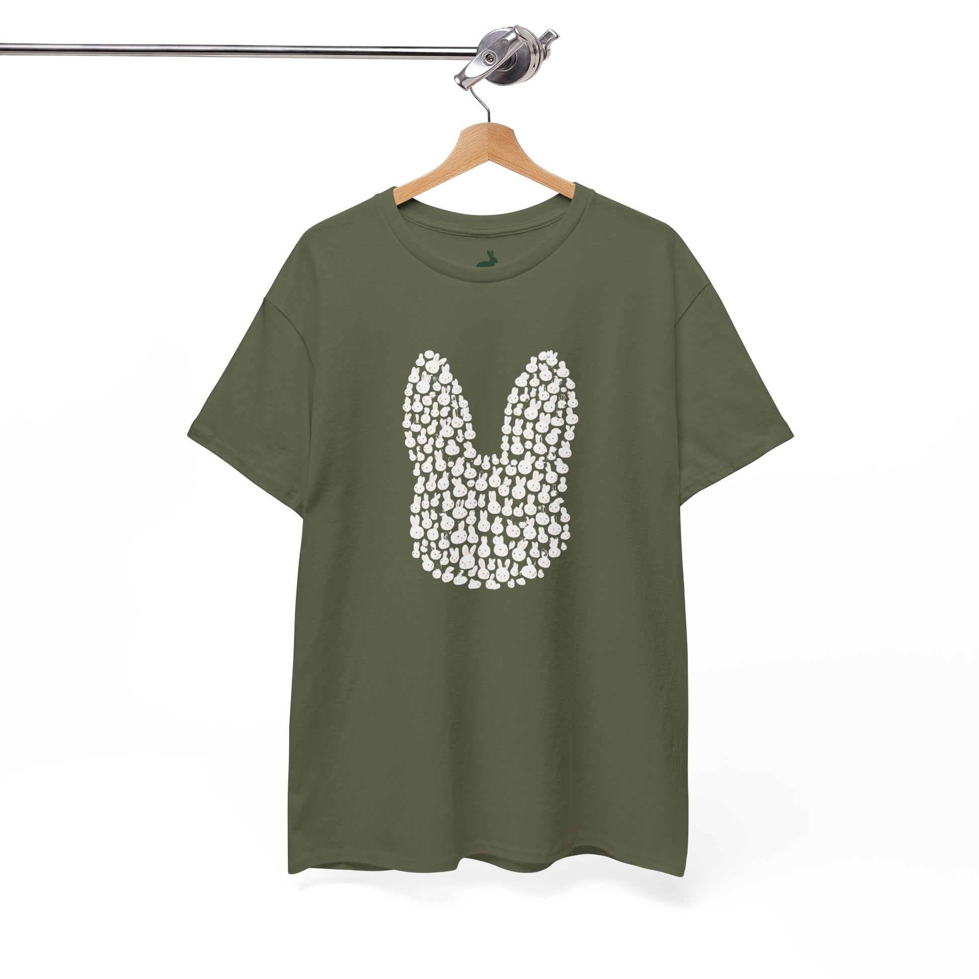 Get ready to do a double take—our “Bun Within a Bun” tee is a true masterpiece for the observant bunthusiast. At first glance, it’s a bold bunny silhouette. But look closer, and you’ll see it’s made entirely of tiny white rabbit heads—each one a nod to your favorite floofy companions.