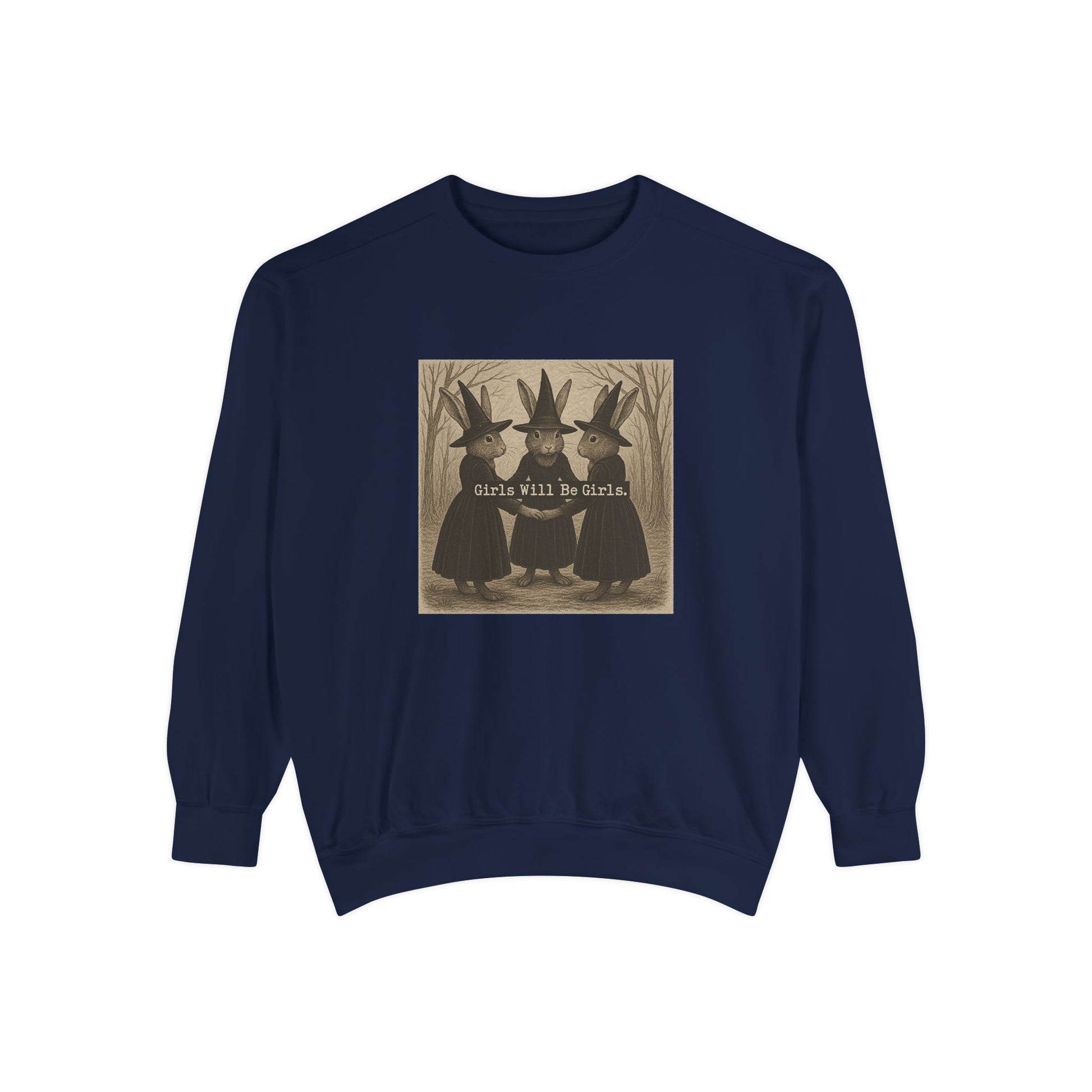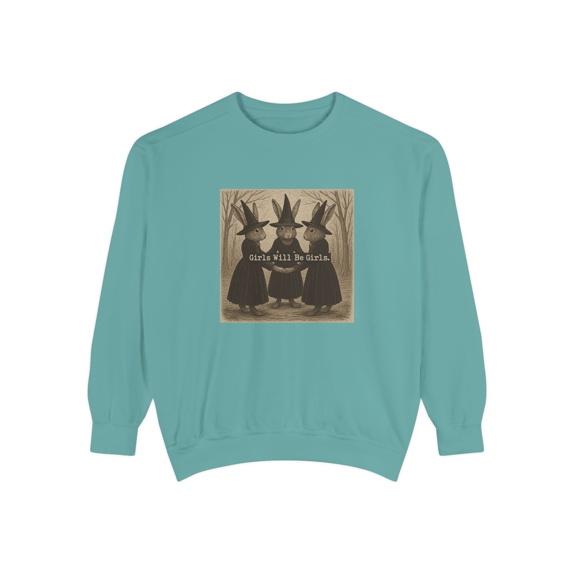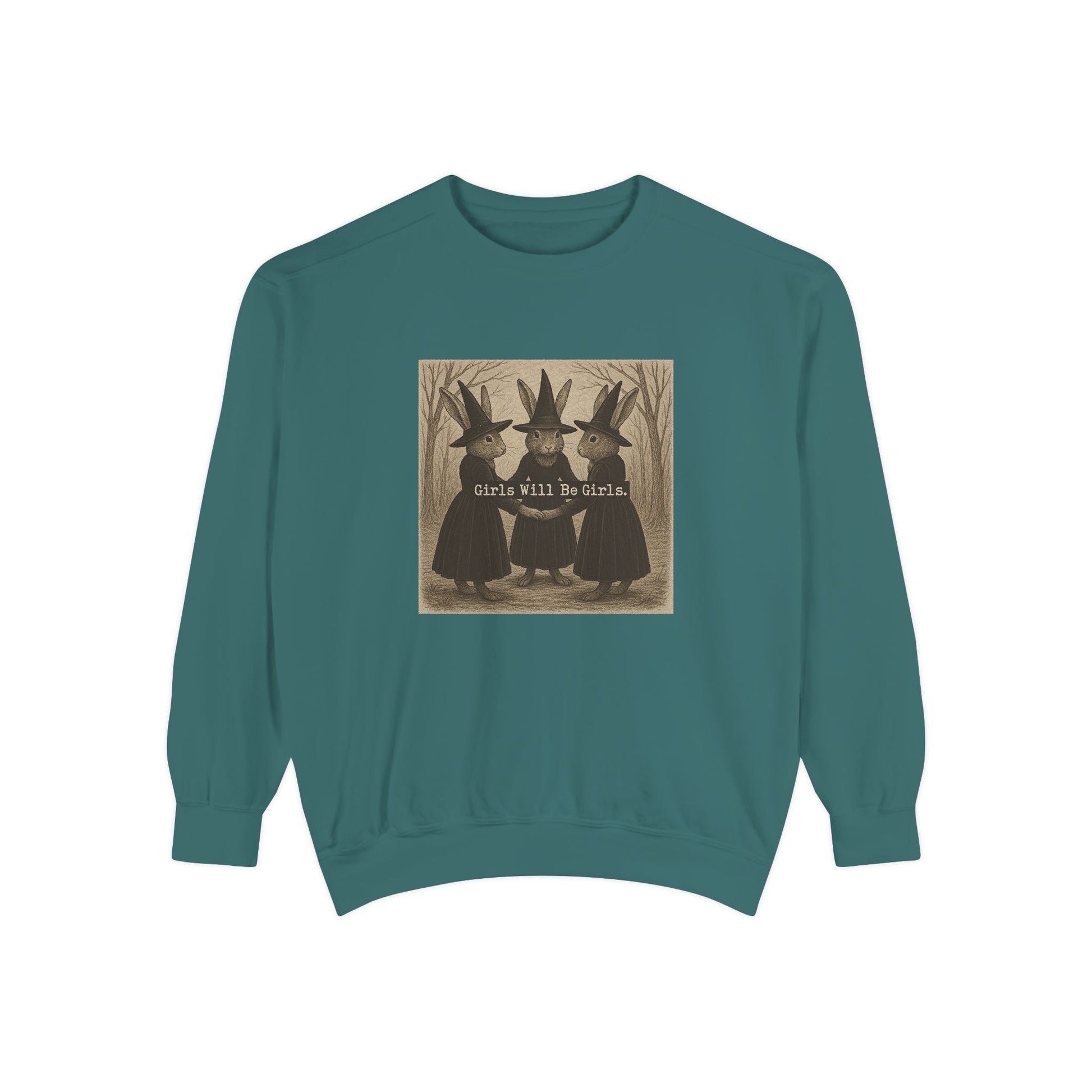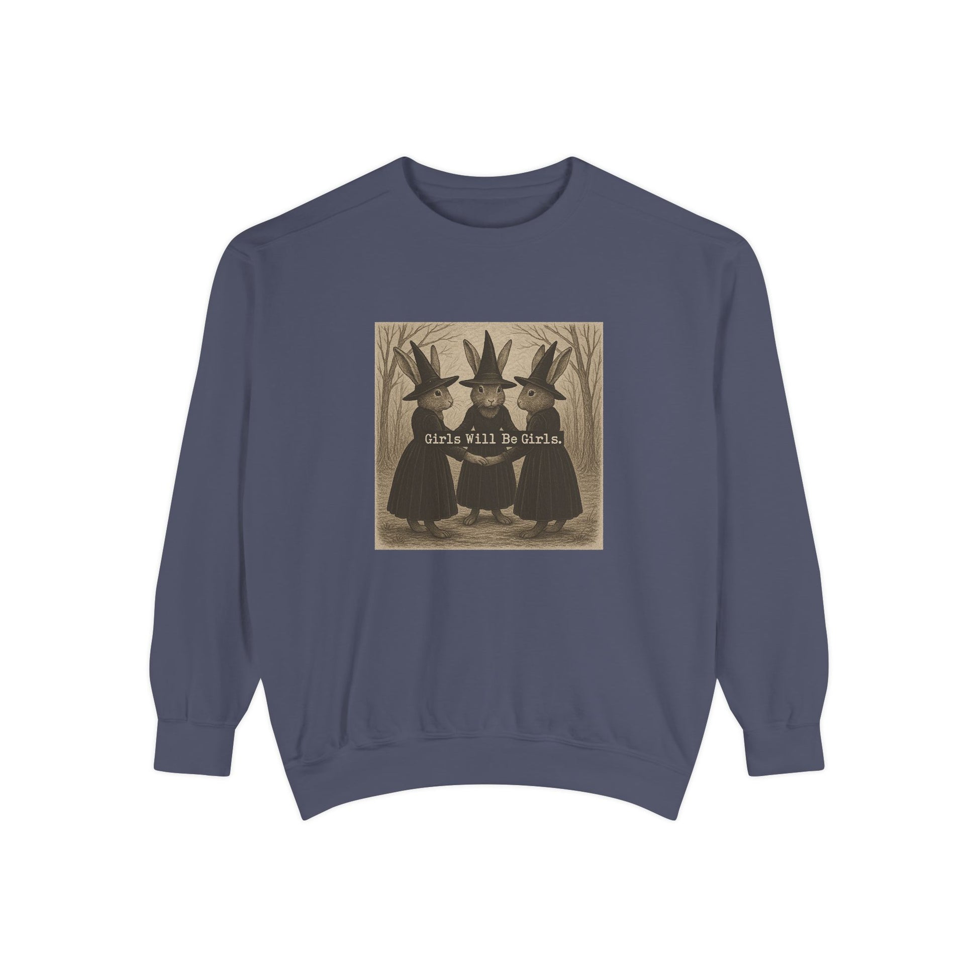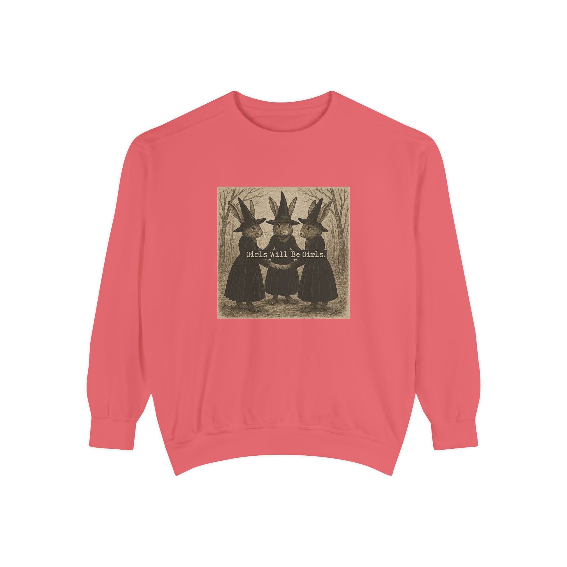 Girls Will Be Girls Rabbit Witch Circle – Garment-Dyed Bunny Sweatshirt | Halloween & Fall Collection