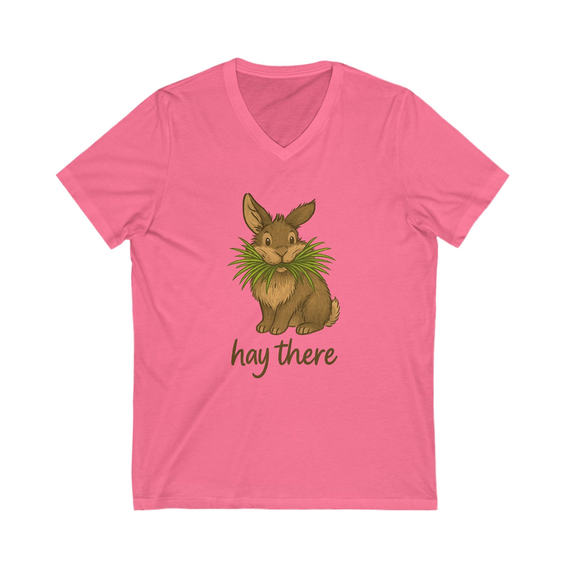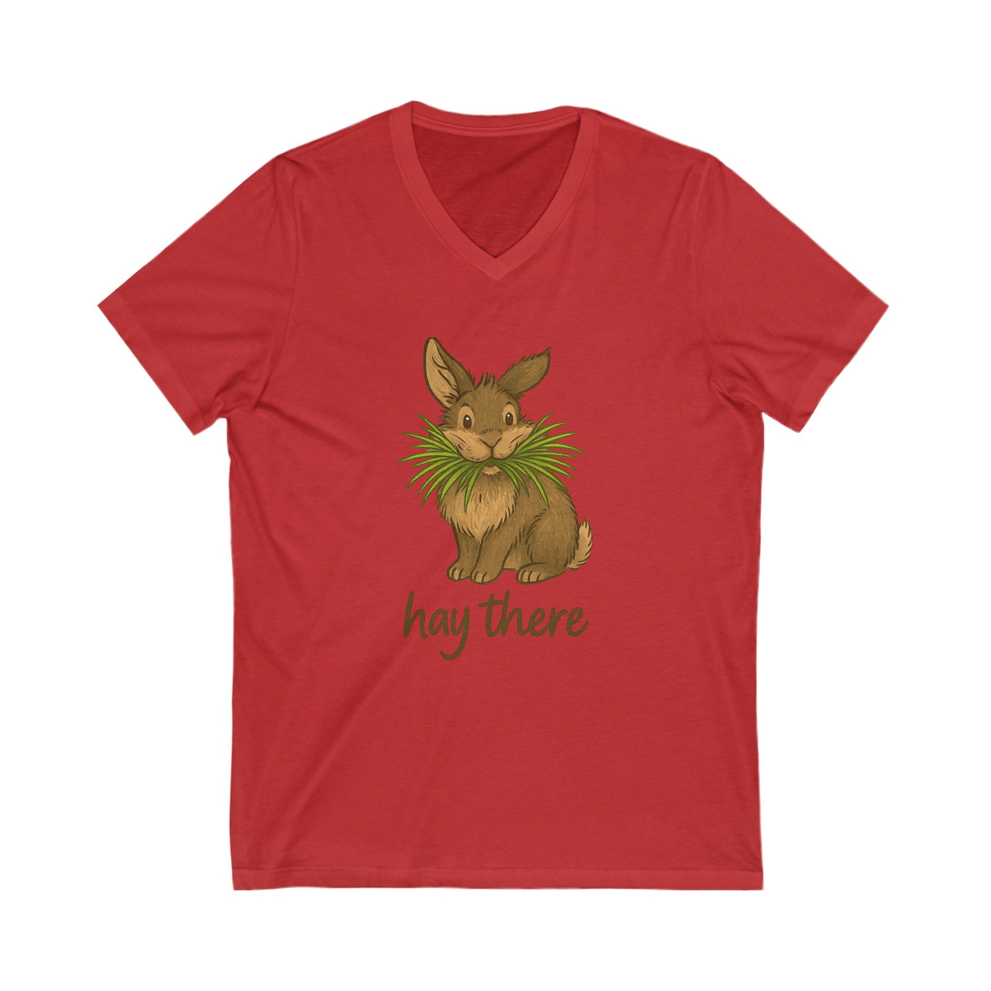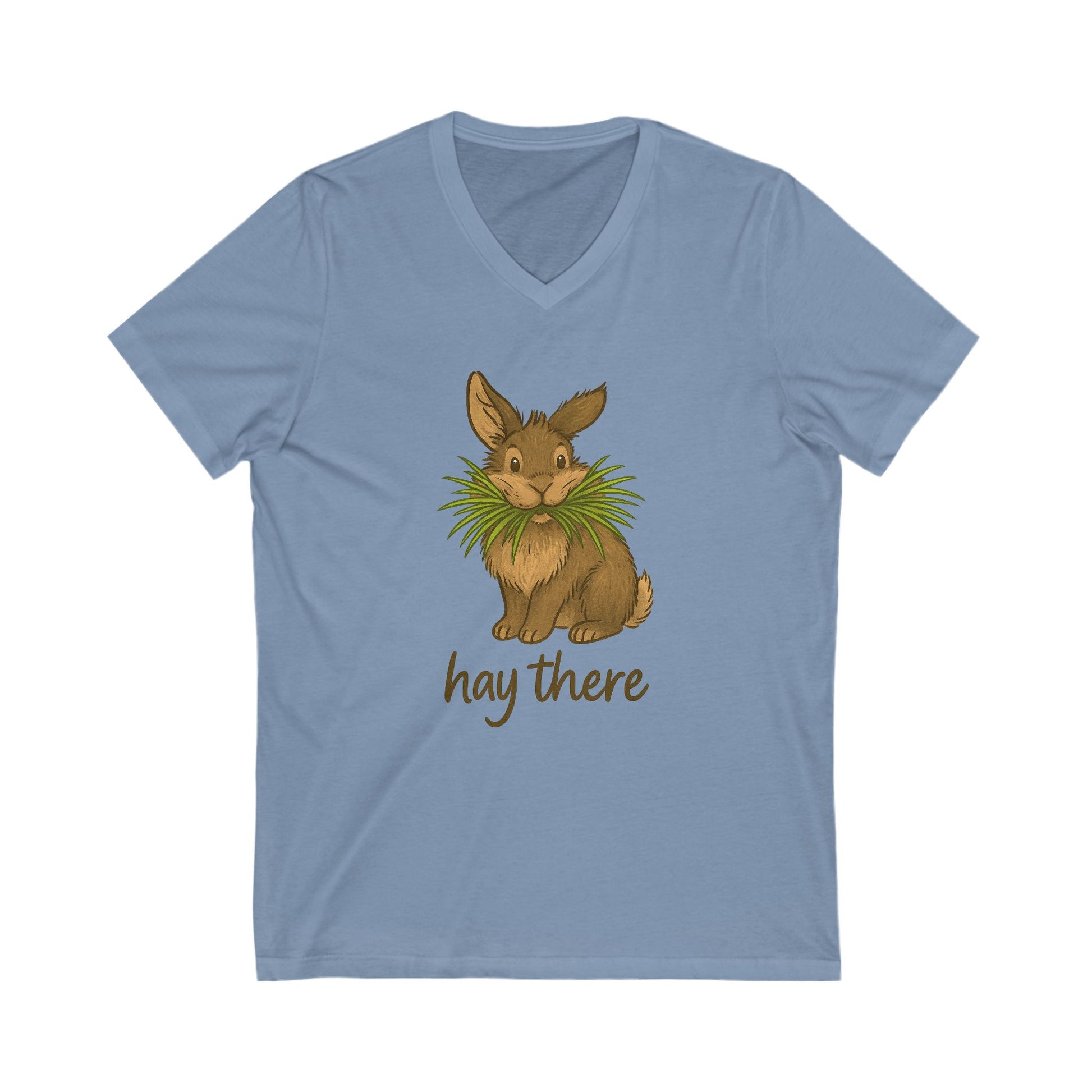 Hay There Bunny V-Neck Shirt – Farm, Rabbitry & Rabbit Lover Classic Tee - Funny Unisex Animal T-Shirt