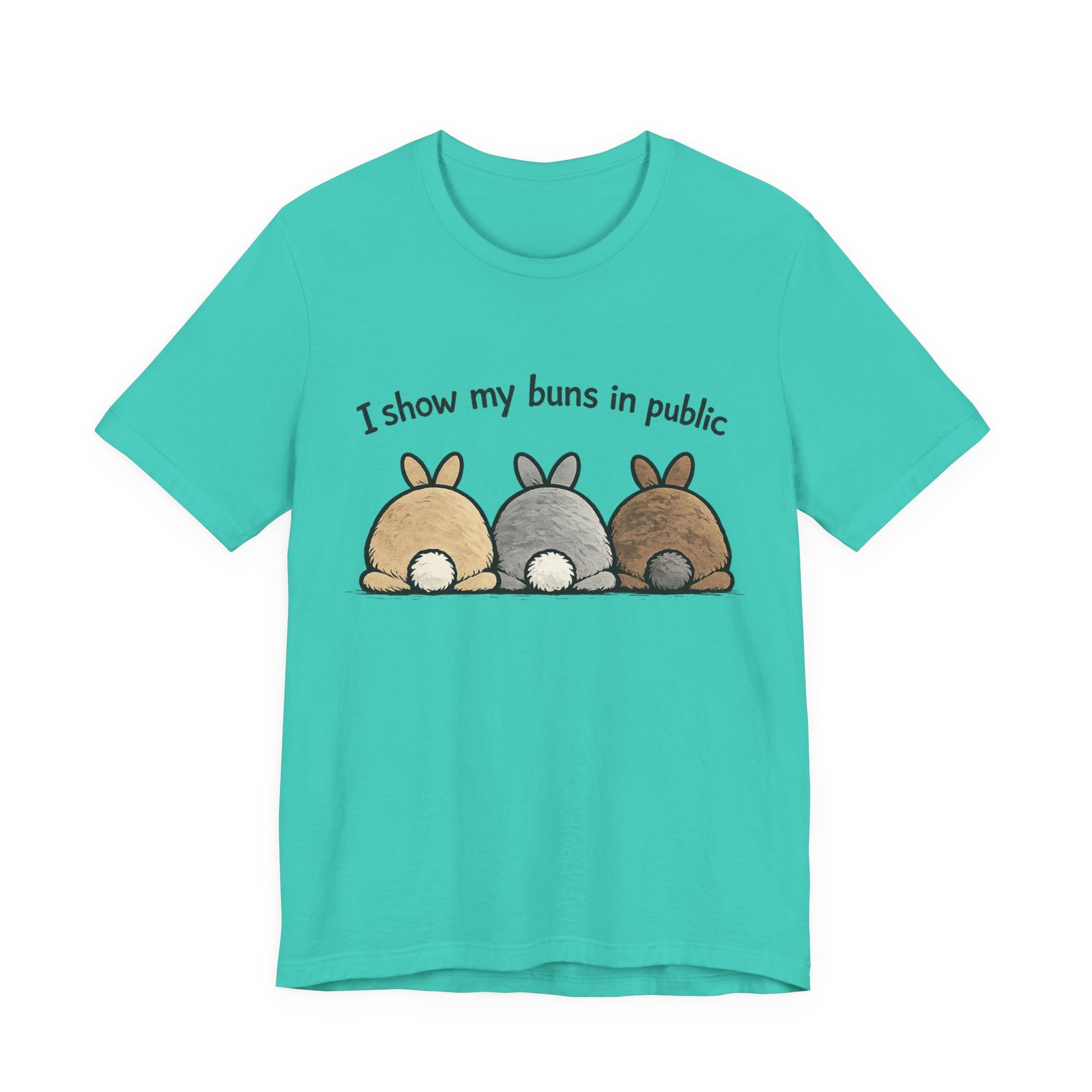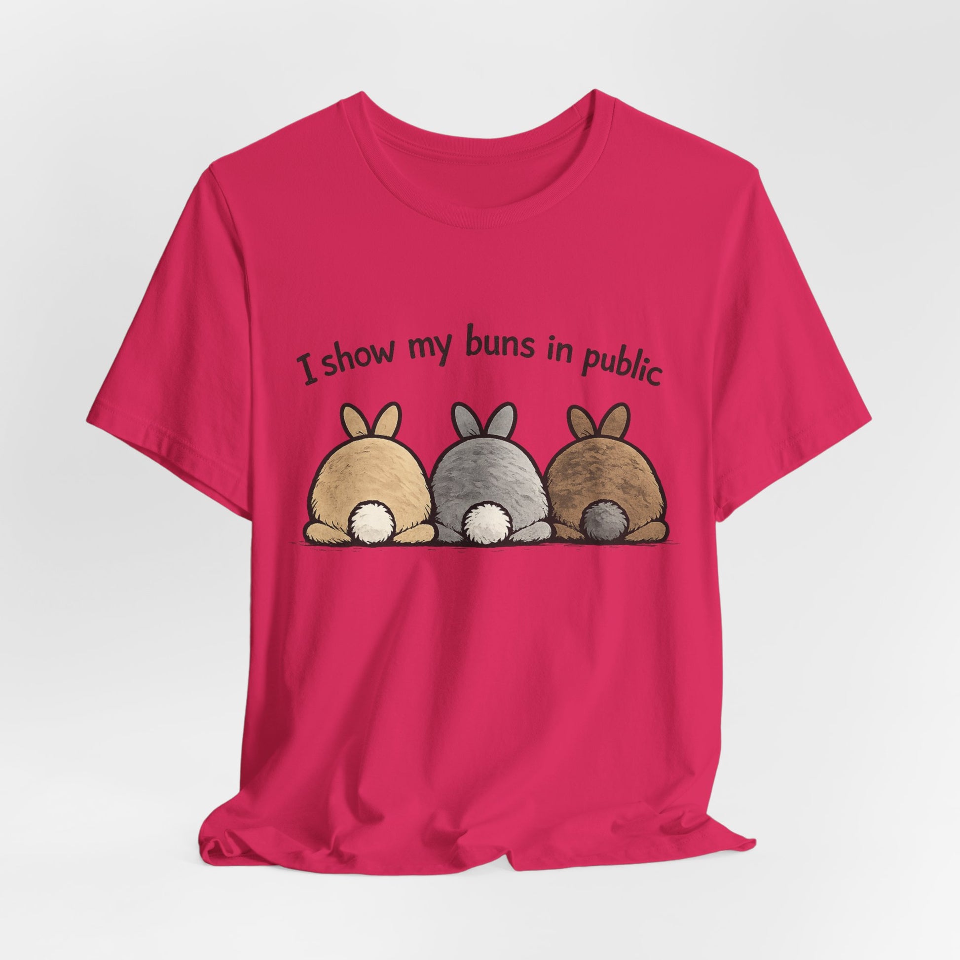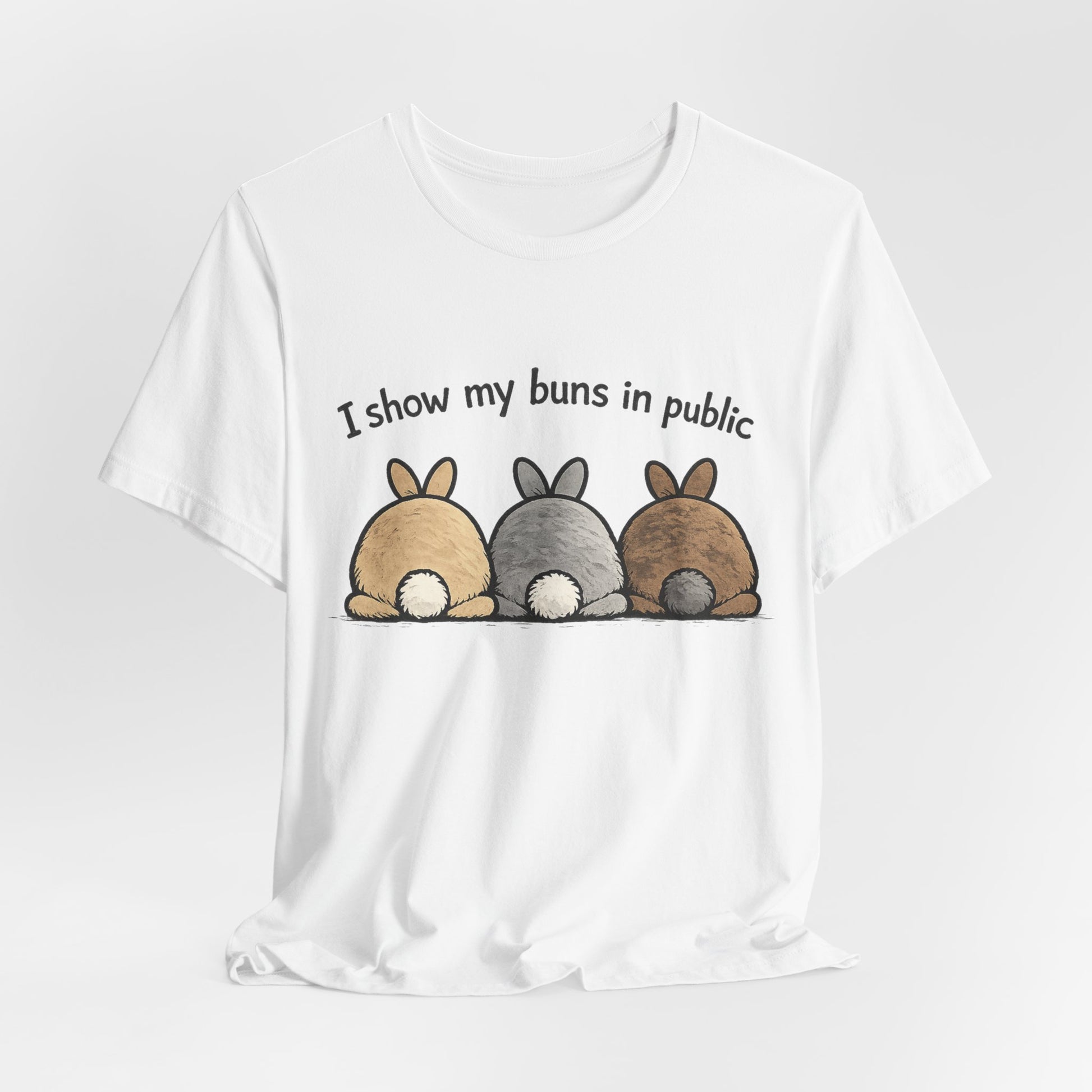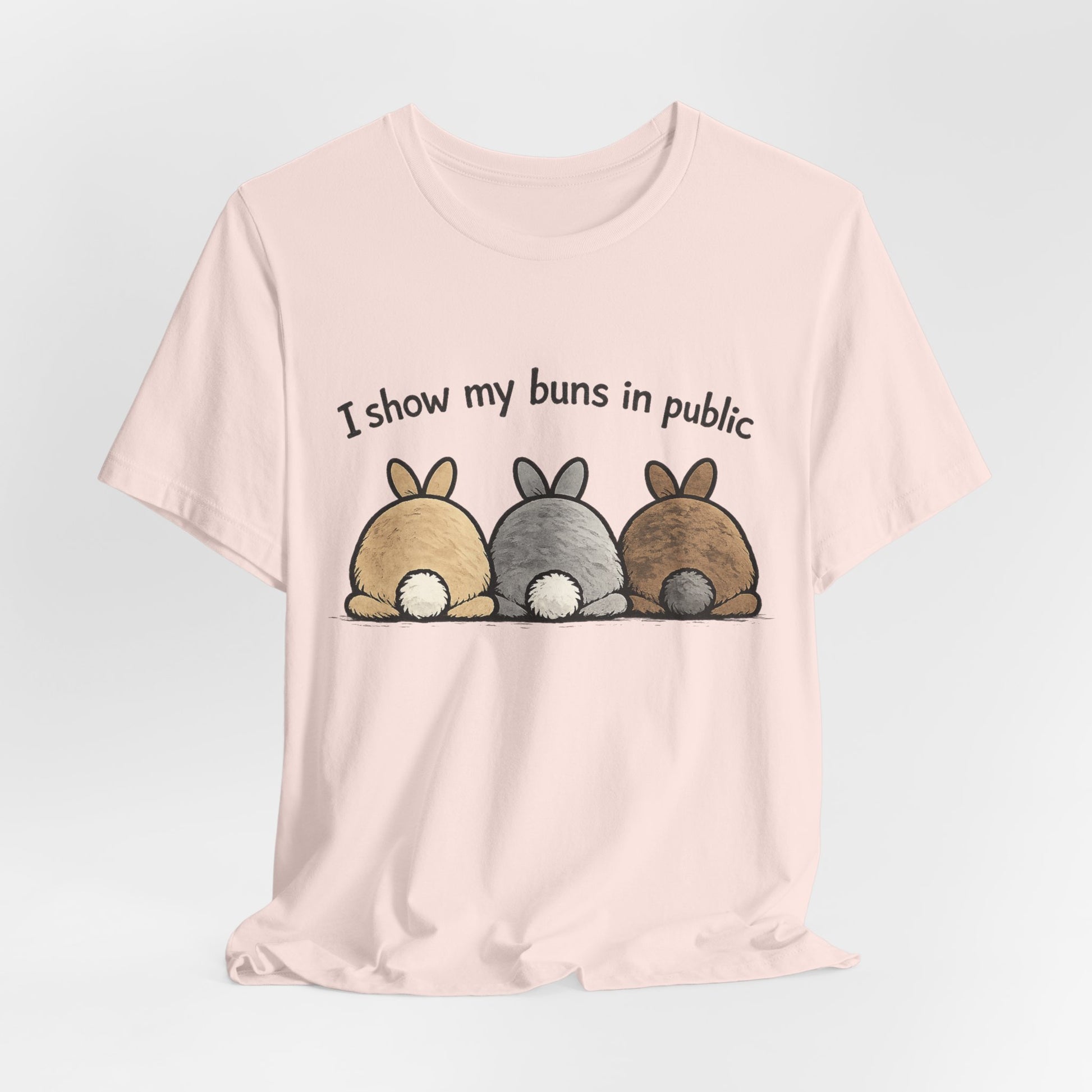 "I Show My Buns in Public" T-Shirt – Rabbit Show Exhibitor Tee | Funny Unisex Bunny Apparel