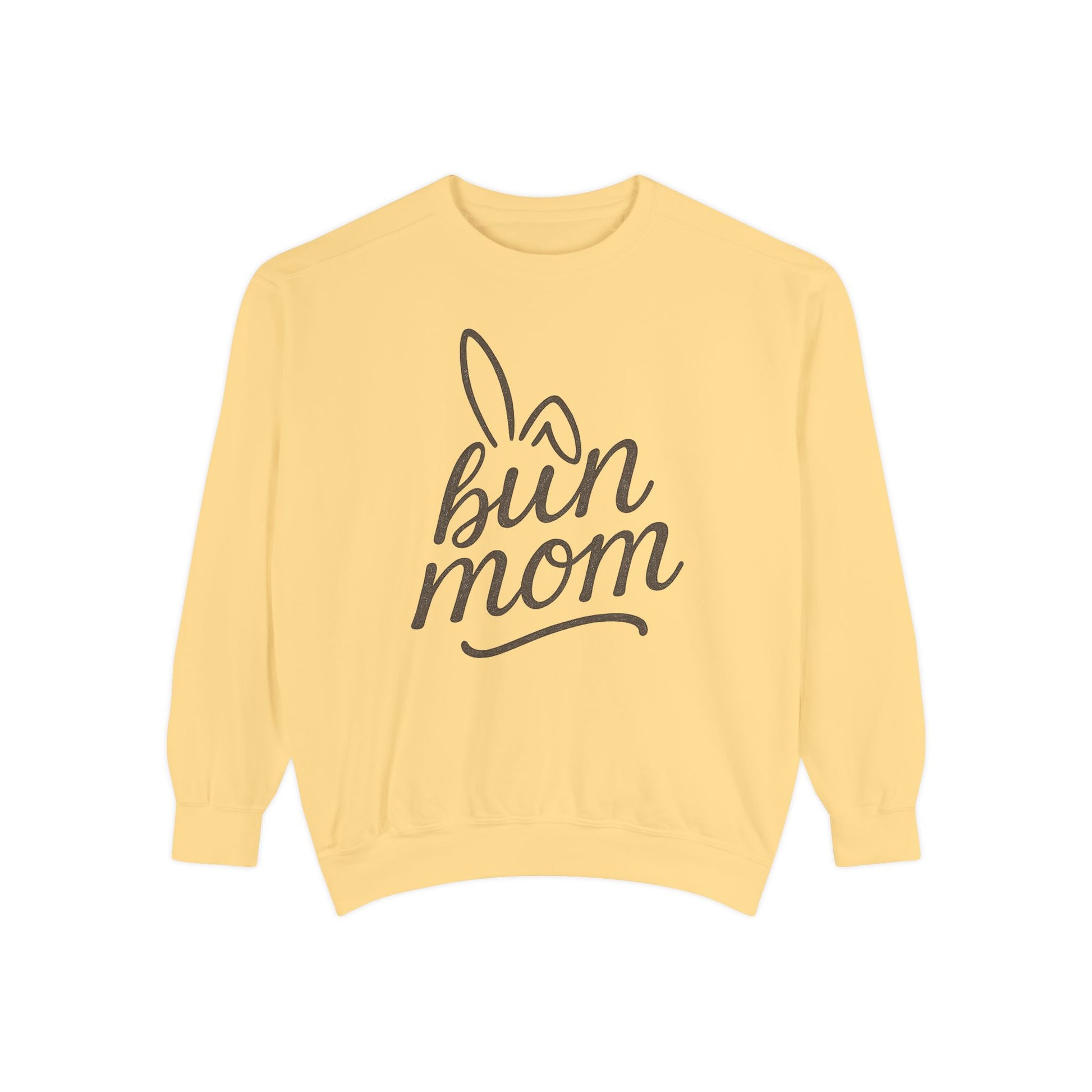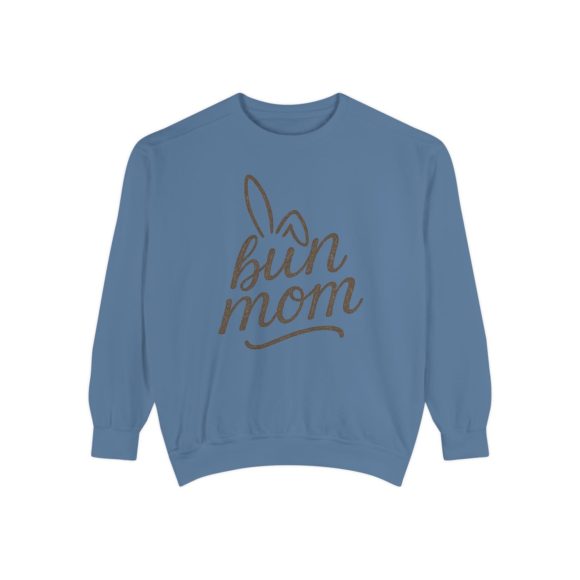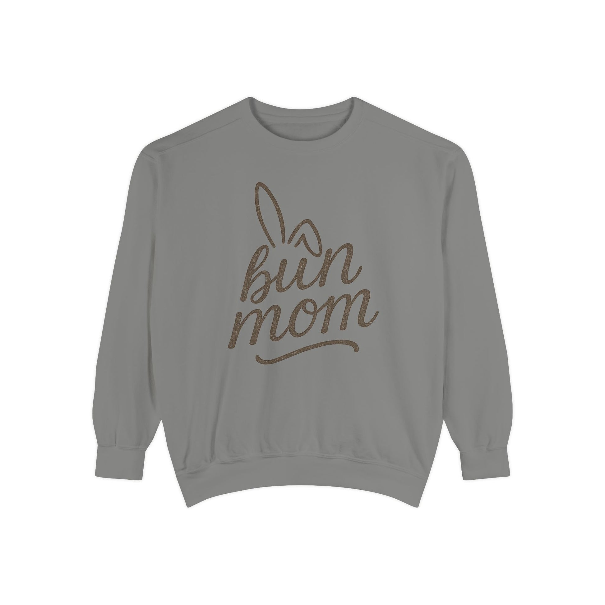 Vintage "Bun Mom" Bunny Ear Sweatshirt – Cursive Script - Cozy Gift for Rabbit Mom - Casual Comfort Wear - Trendy Apparel