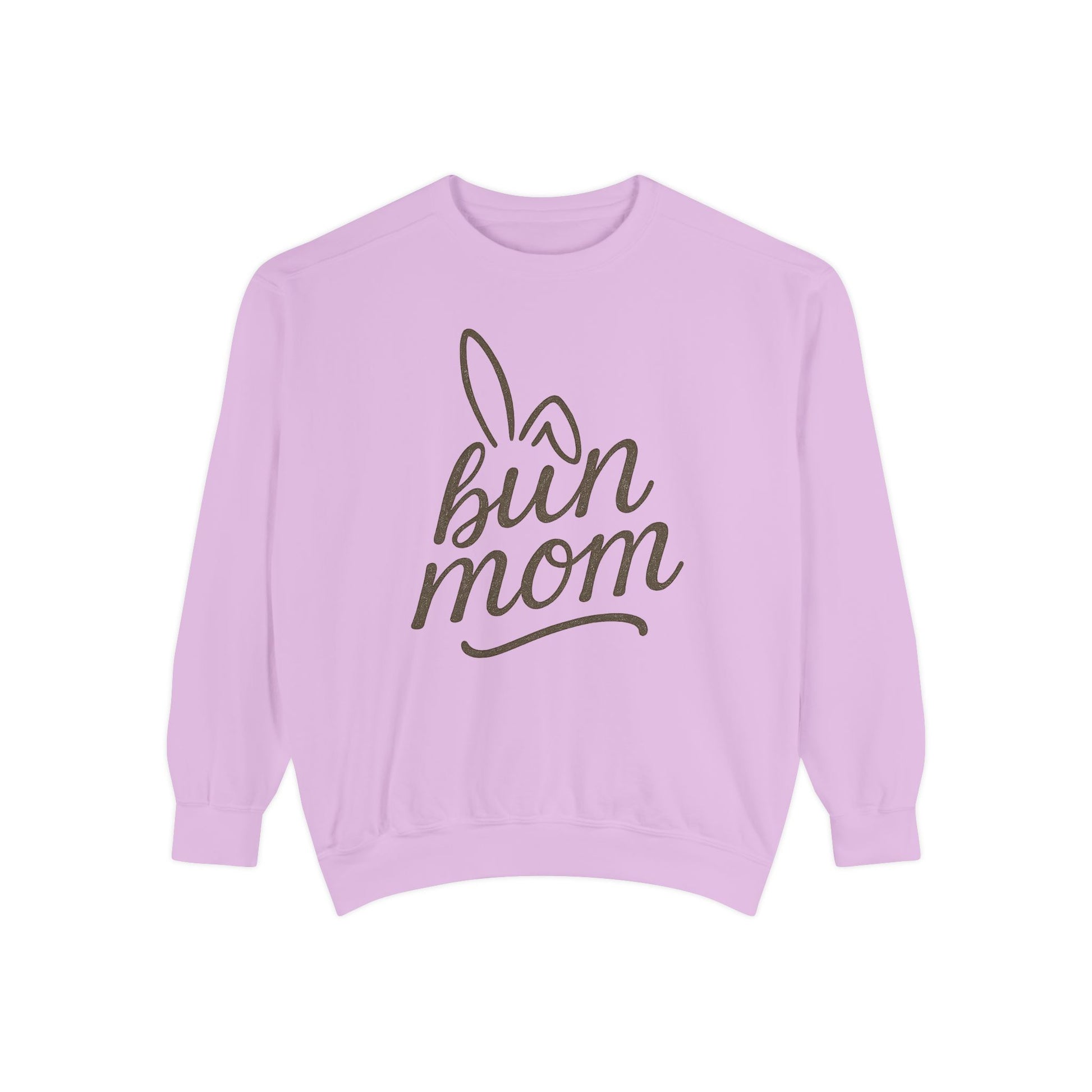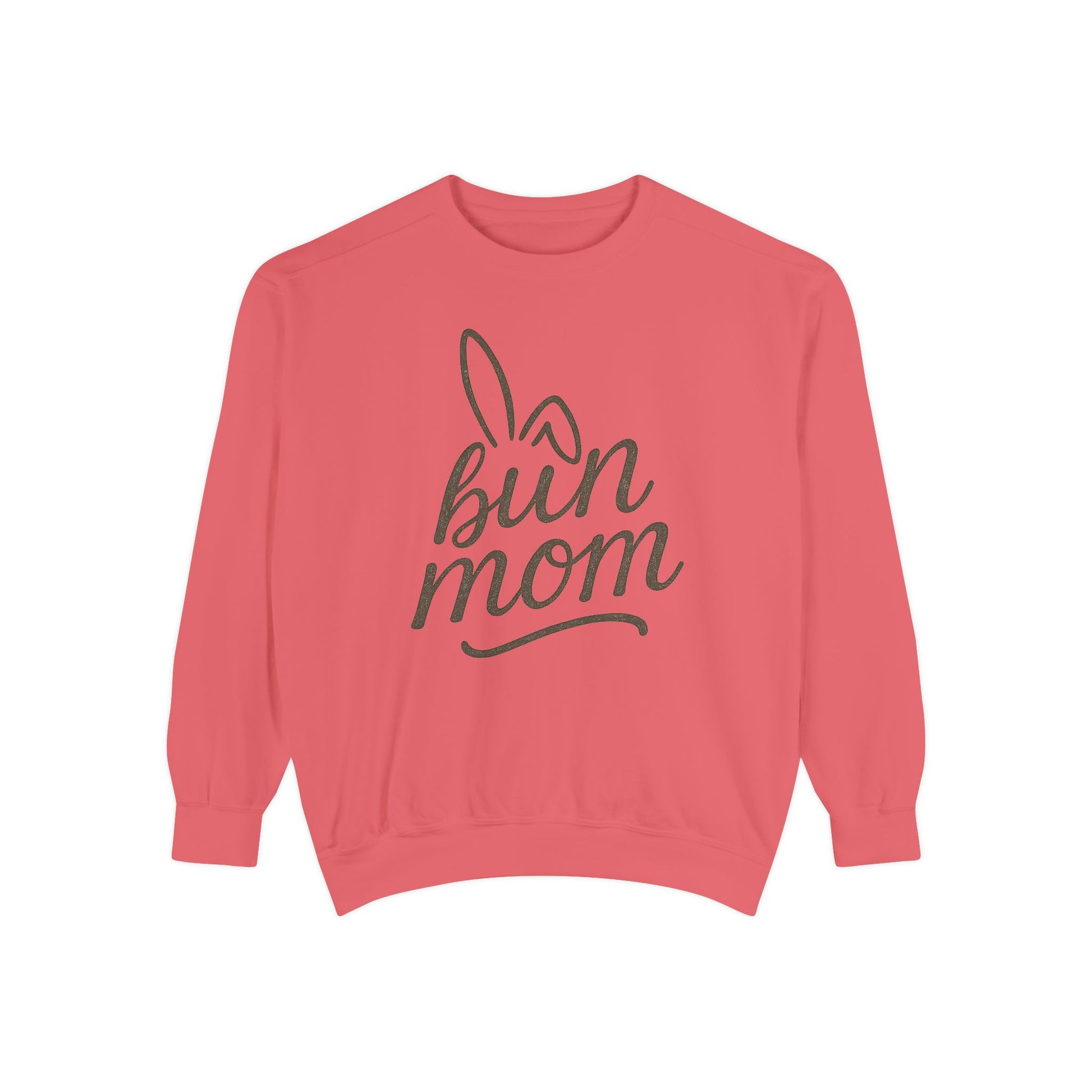 Embrace comfort and style with this garment-dyed sweatshirt. The soft, luxurious fabric, made from 80% cotton and 20% polyester, offers a cozy vibe that makes it perfect for everyday wear. This relaxed-fit sweatshirt is ideal for casual outings or lounging at home, ensuring you feel good wherever you go. Perfect for 'bunny moms' during any laid-back occasion, it's a cheerful addition to any wardrobe. Celebrate your love for your bunny family members with this cute and trendy piece, making it a fantastic gift for moms, friends, or anyone who enjoys a blend of comfort and playful style. Perfect for holidays, birthdays, or just because!